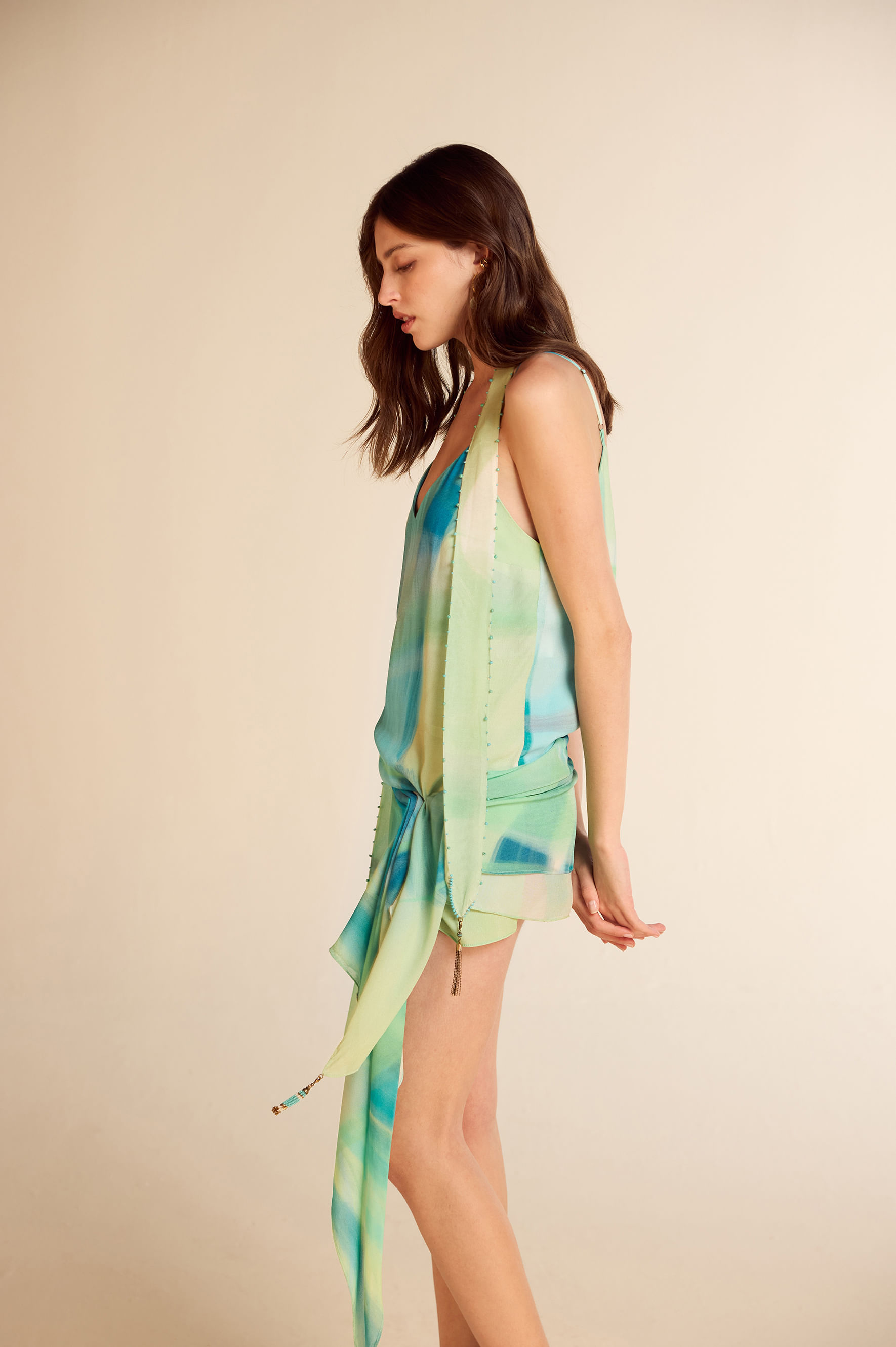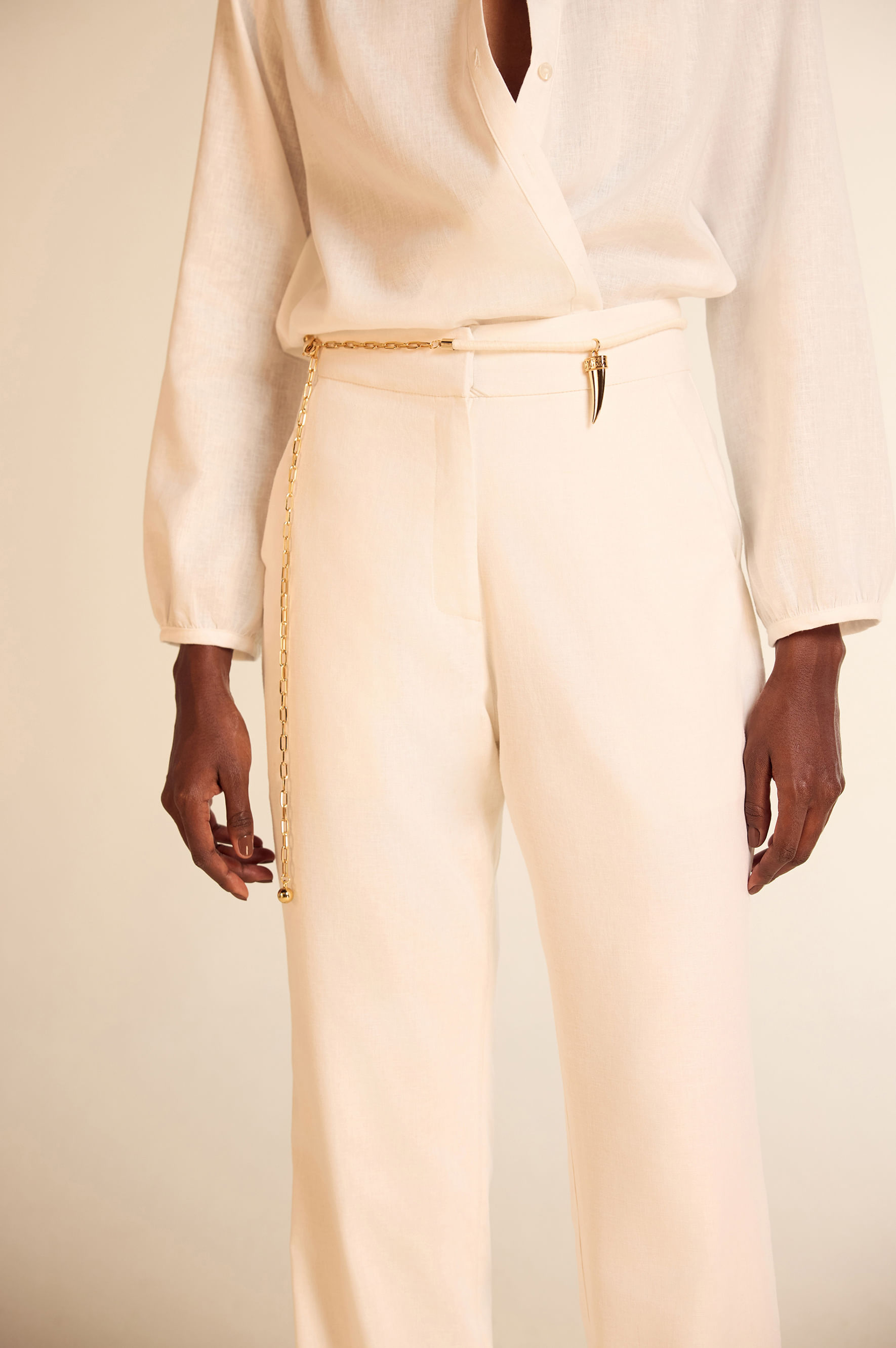 Cinto cordão alinhavo corrente pingente