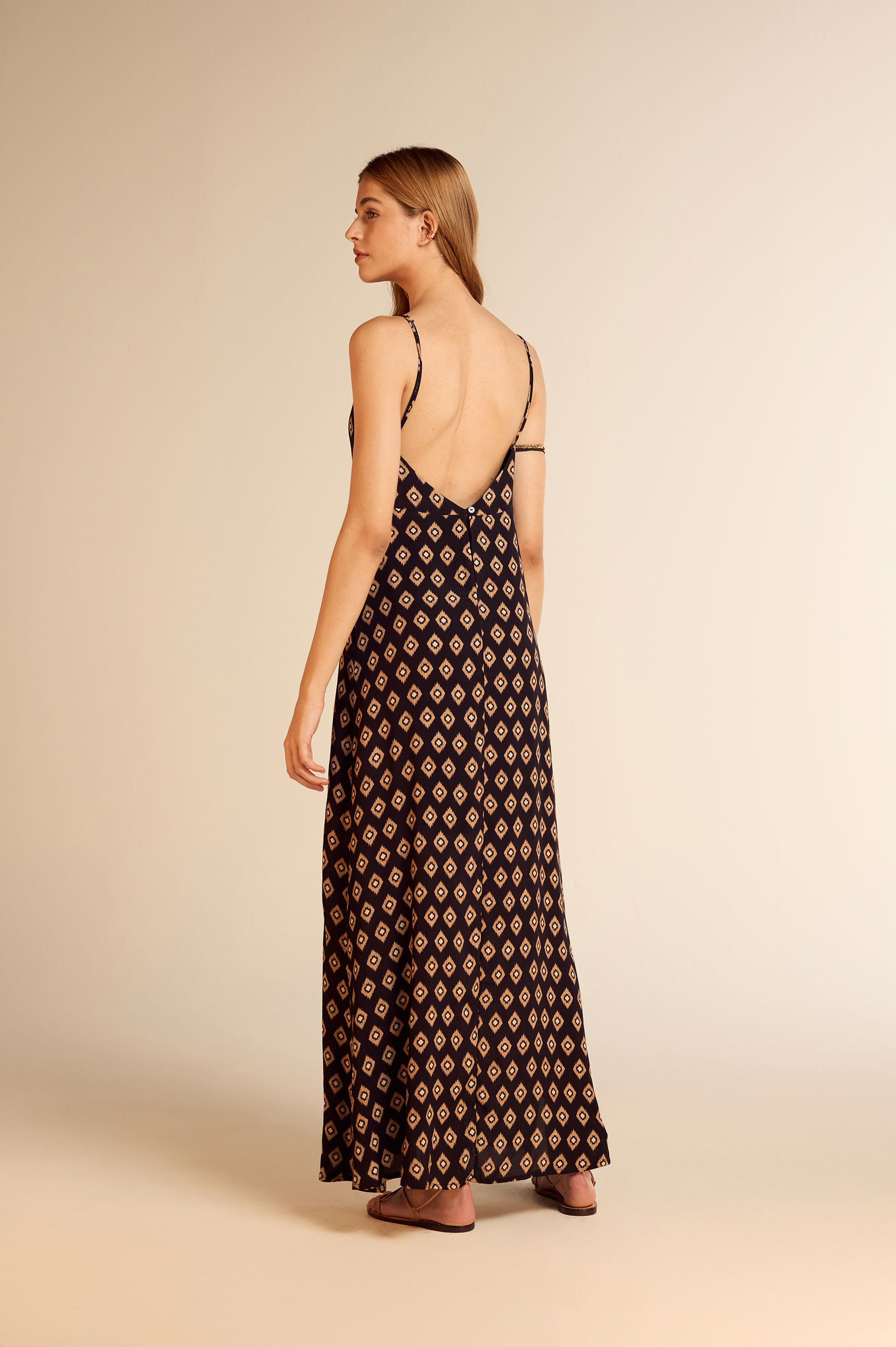 Vestido Midi Estampa Ikat Preto