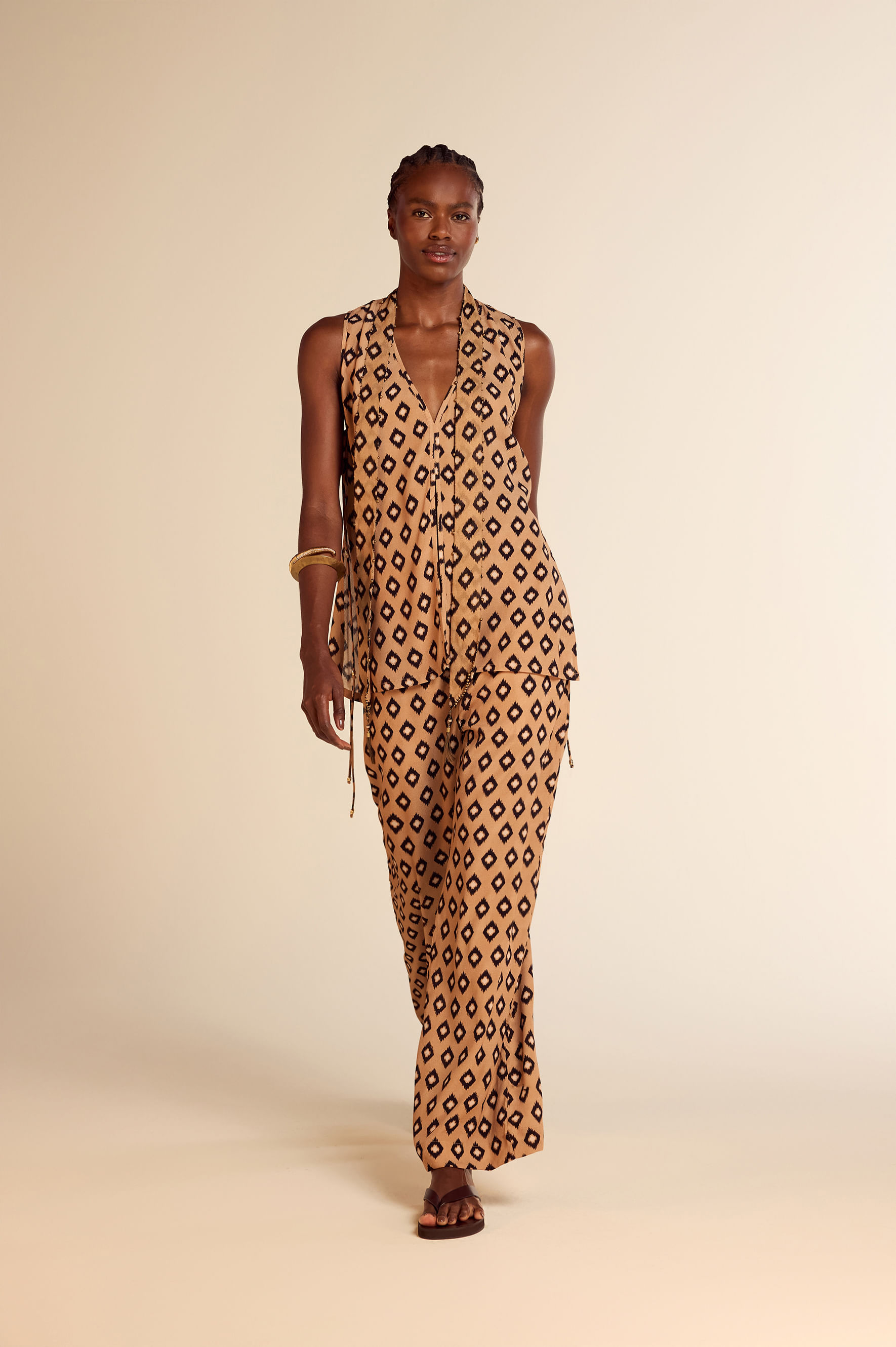 Calça Estampa Ikat Bege
