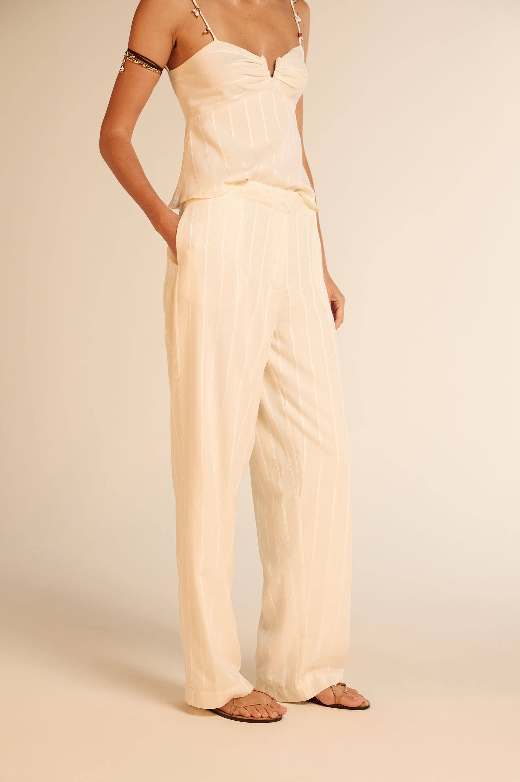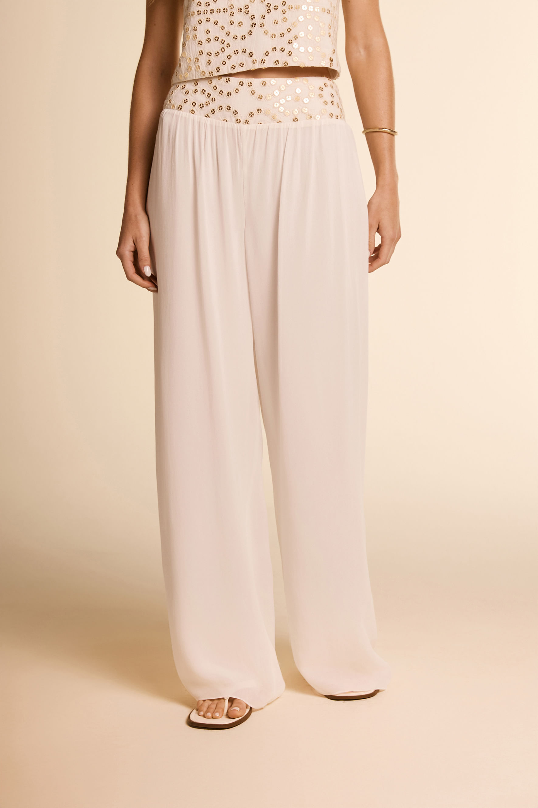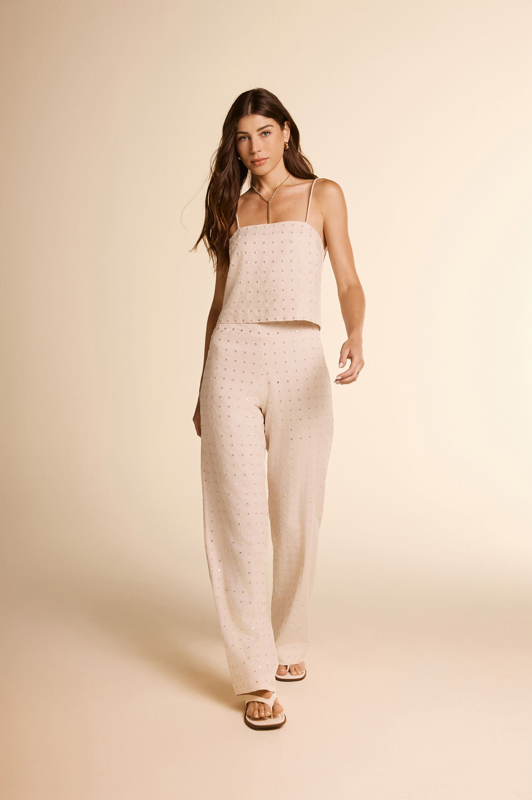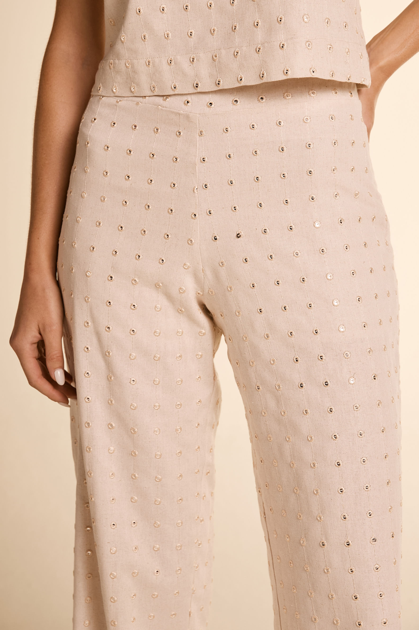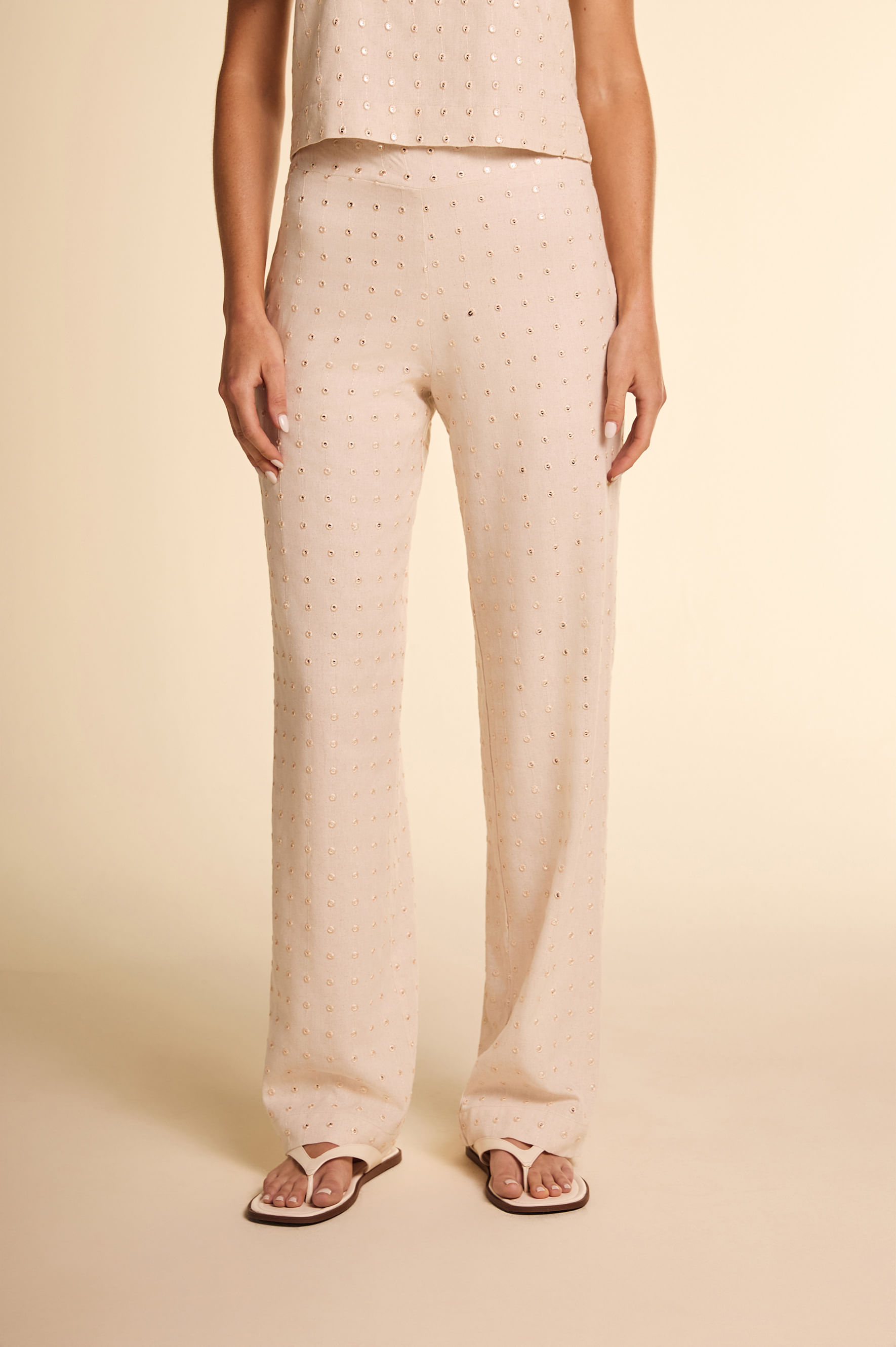 Calça Linho Bordado Espelhos