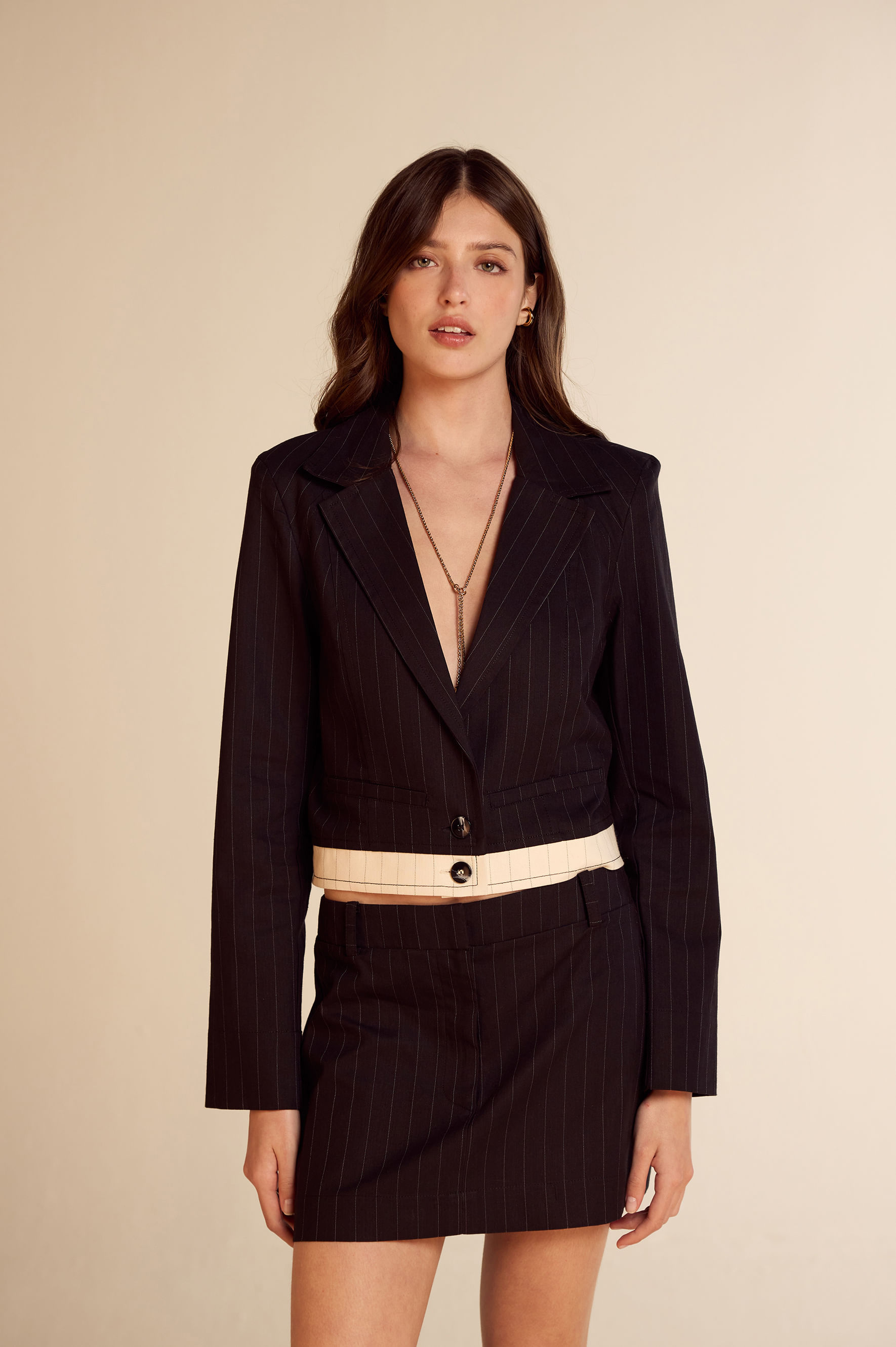 Saia Curta Alfaiataria Risca de Giz