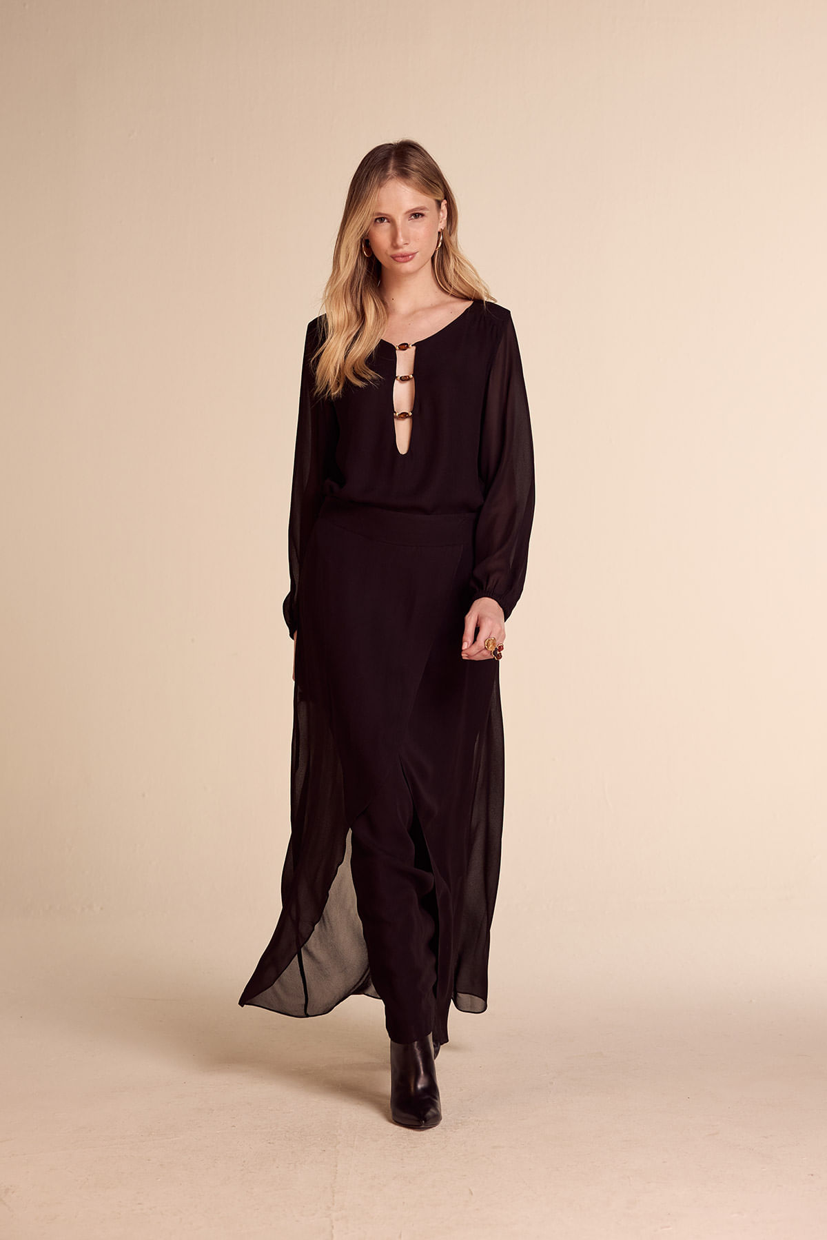 Saia Curta Alfaiataria Risca de Giz - Preto